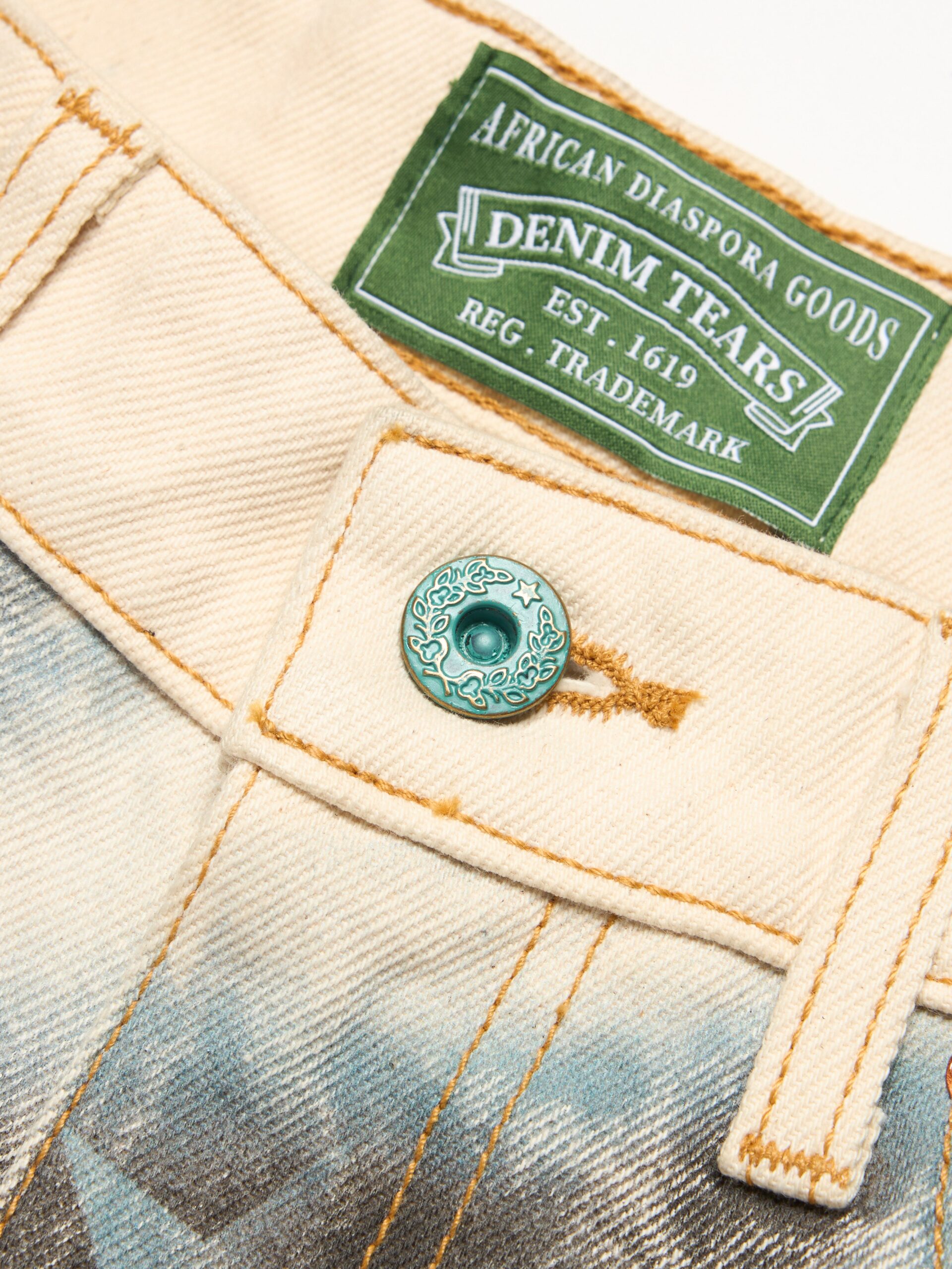 Produced in LA in a 100% cotton denim twill cut to the same fit as our signature Denim Shorts, our Cloud Camo Shorts feature a full Cloud Camo airbrushed print: a graphic amalgamation of key ‘Libertas’ motifs, including the US flag, African Diaspora Goods, and New Colossus.