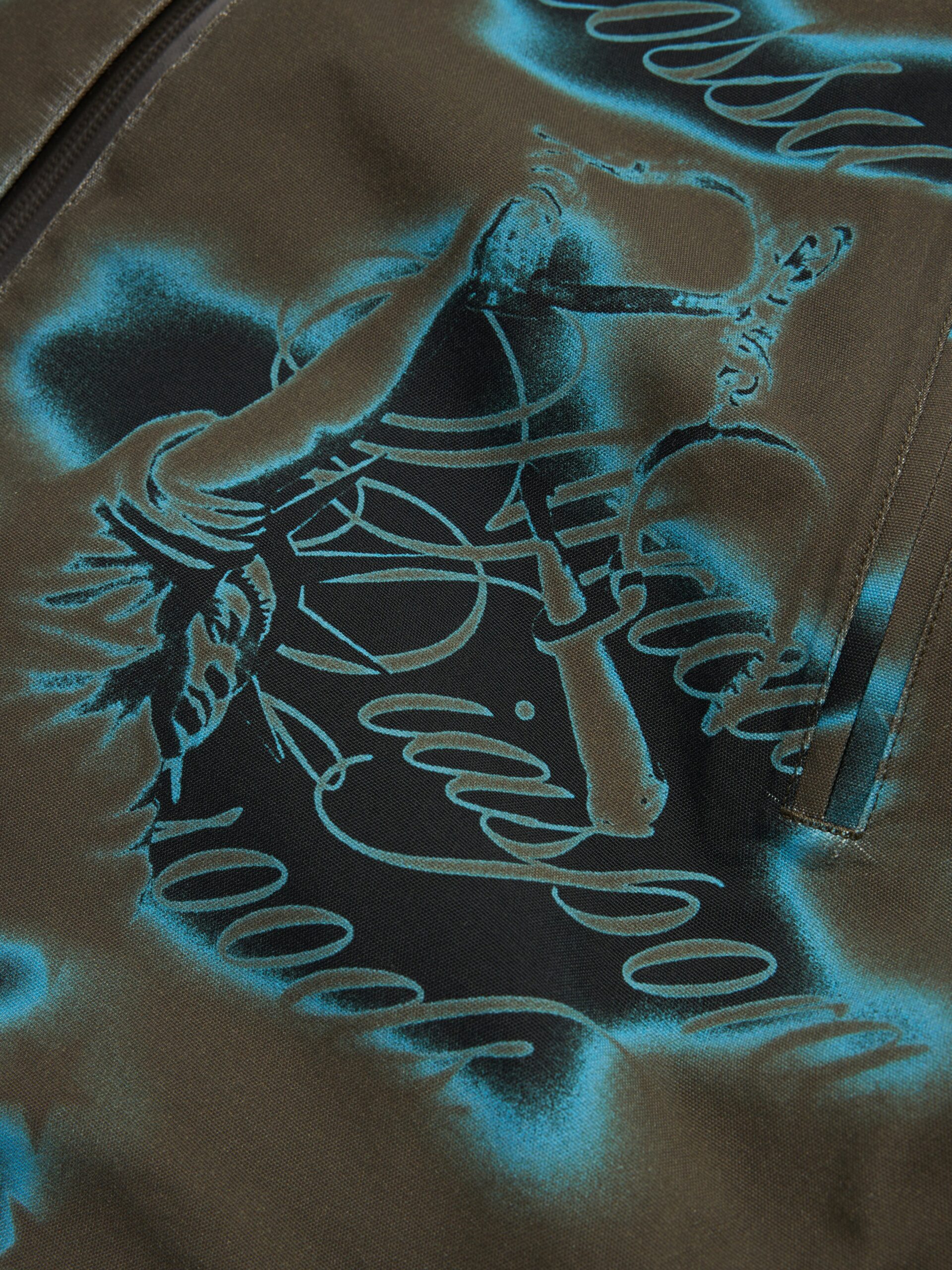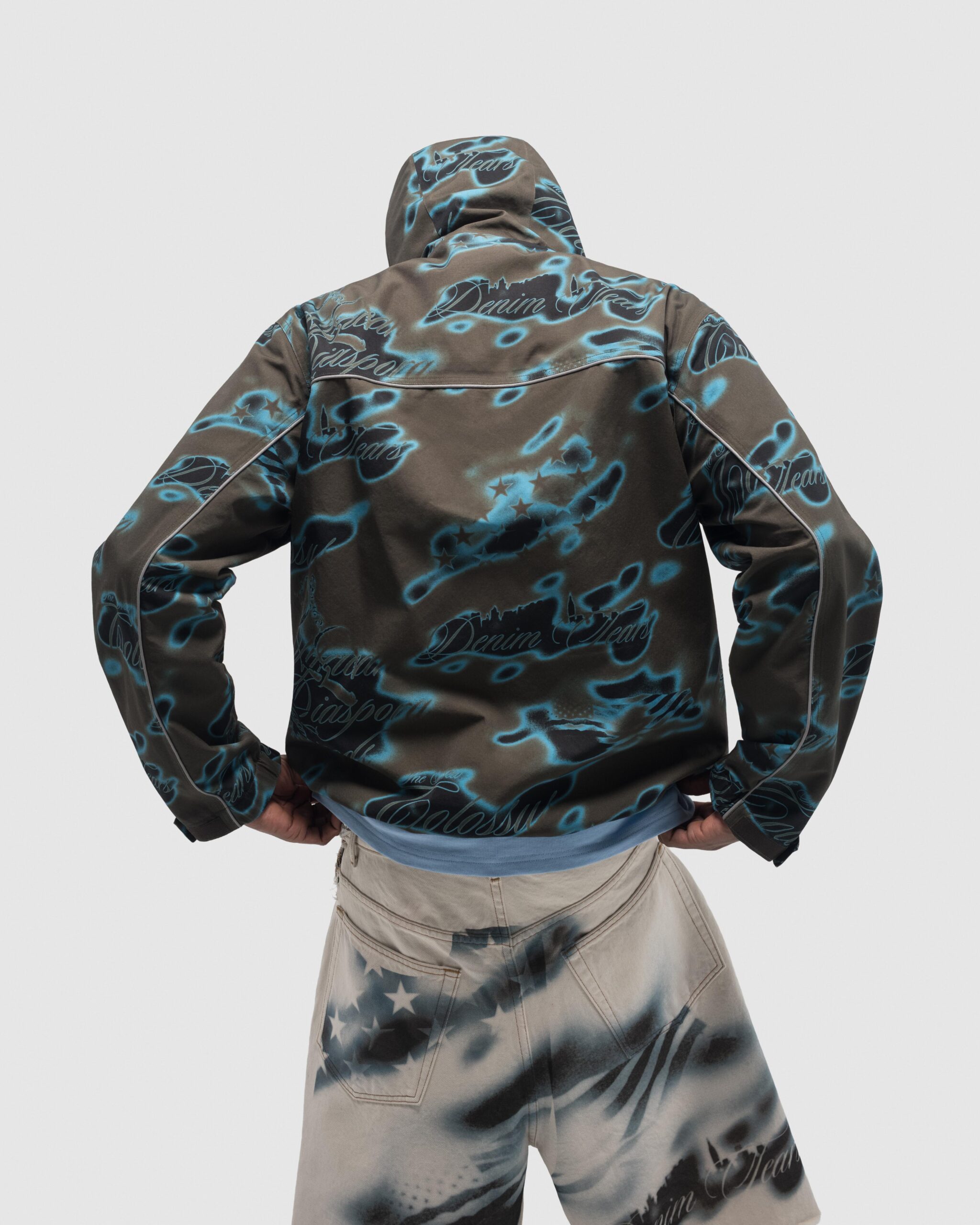 Constructed from a water-resistant 100% Nylon shell, our Cloud Camo Taped Seam Shell Jacket features taped seams and reflective 3M piping, and full Cloud Camo airbrushed print: a graphic amalgamation of key ‘Libertas’ motifs, including the US flag, African Diaspora Goods, and New Colossus.