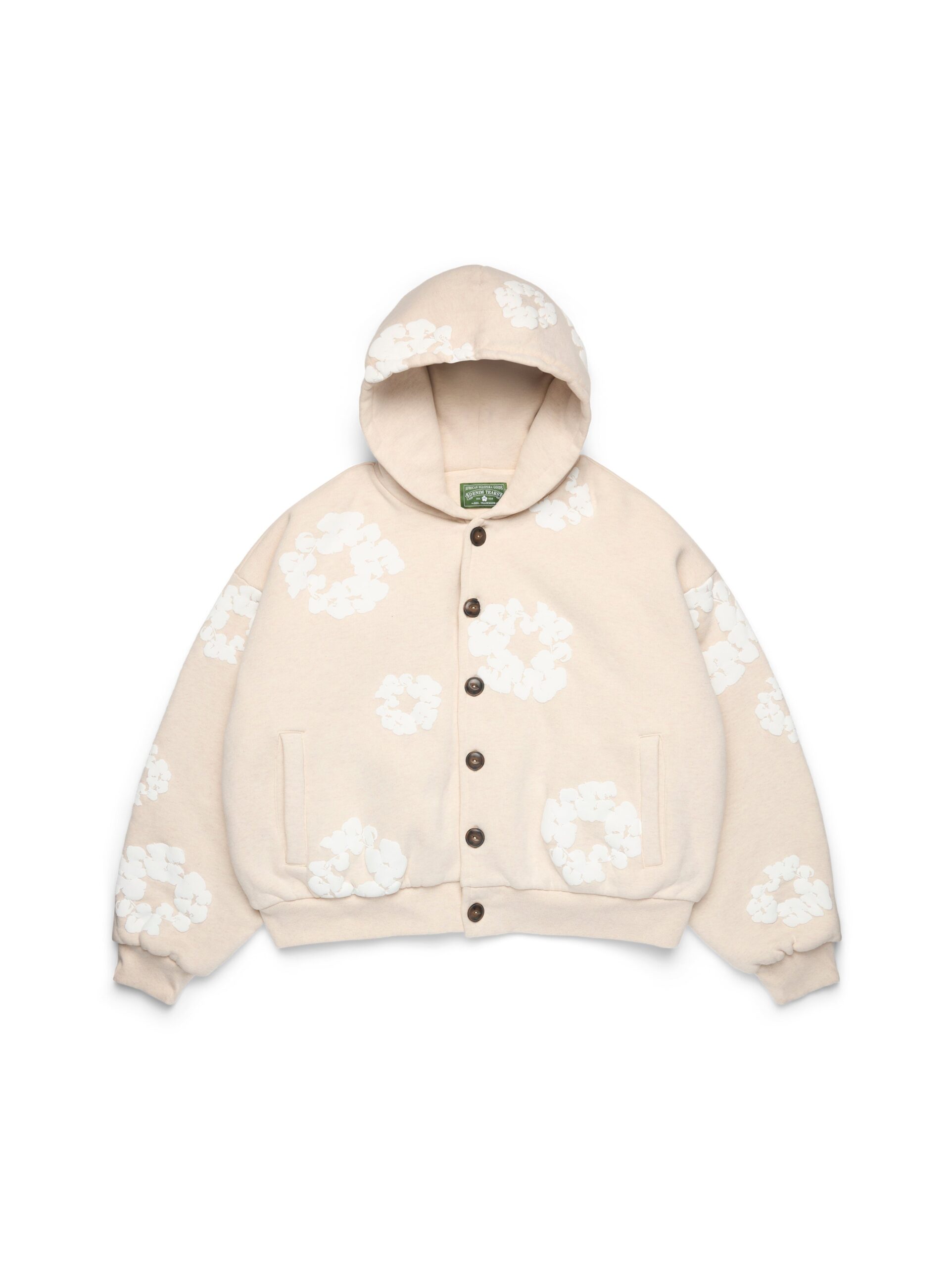 Produced in jersey-lined heavyweight fleece and cut to a regular fit, our Cotton Wreath Cardigan Hoodie features an all-over puff print.