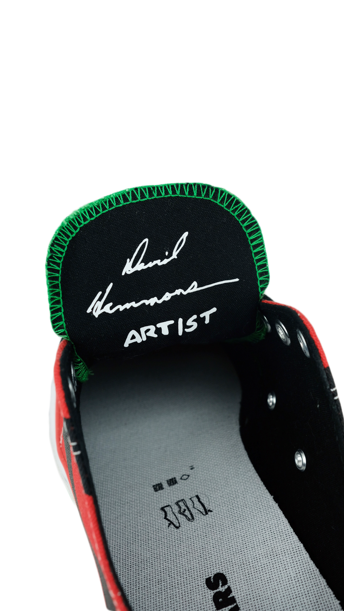 • David Hammon’s signature featured on the inside of the tongue.