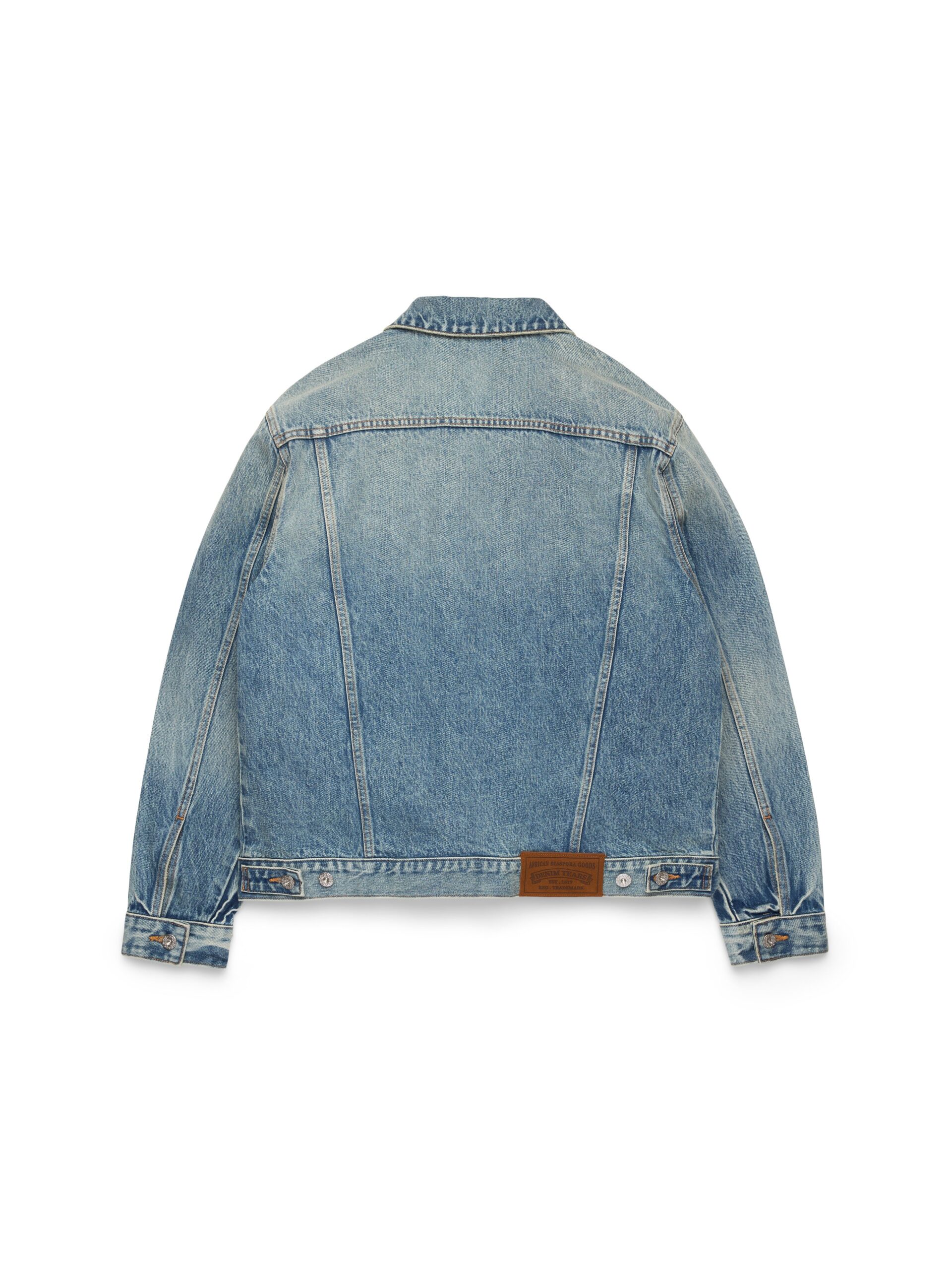 Constructed from heavyweight 14oz denim to a regular fit, our Light Wash Denim Jacket is cut, sewn, and washed in the USA for uncompromised quality. Finished with antique nickel button closure and two button-down flap pockets to the chest.