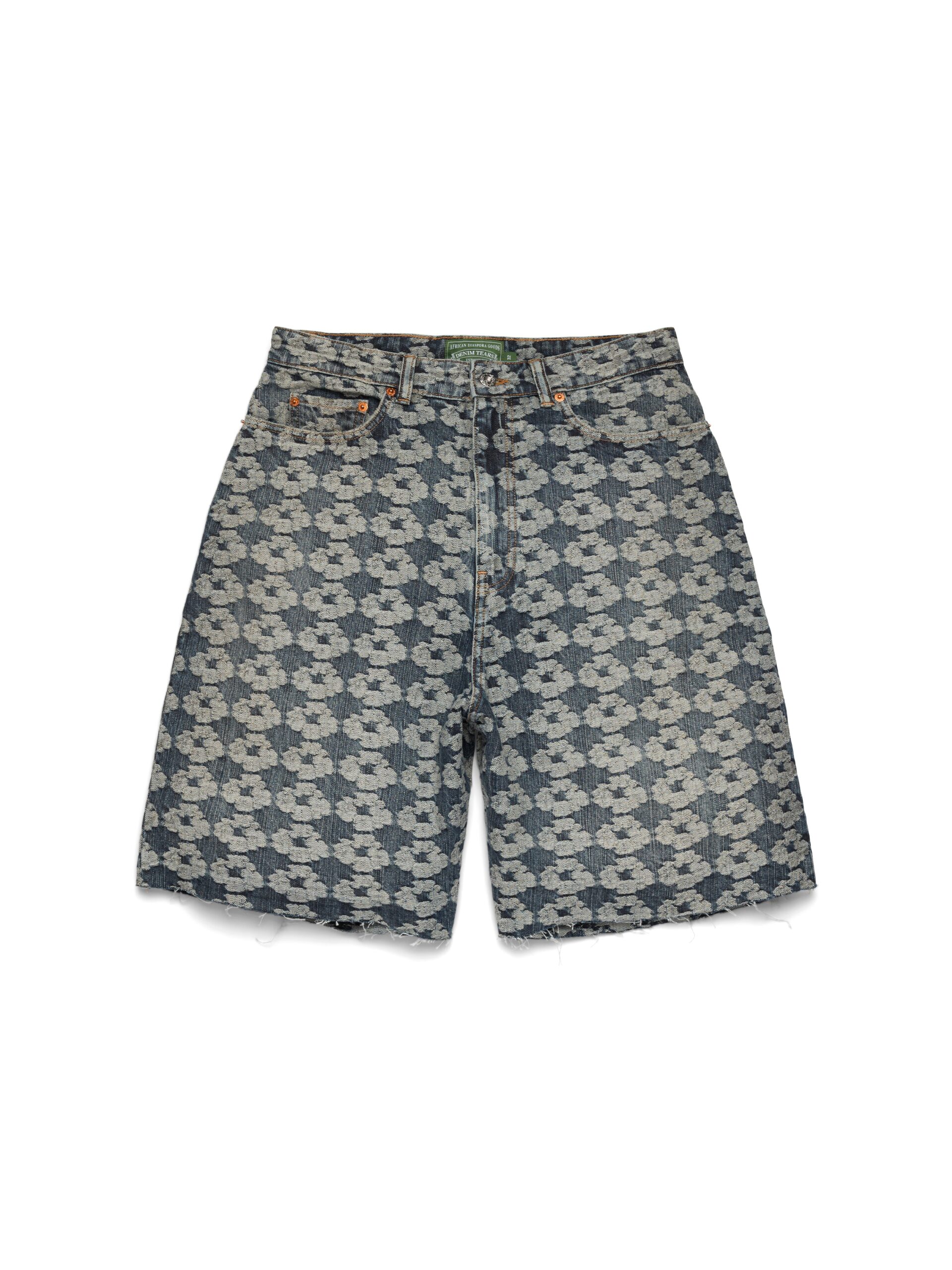 Constructed from mid-weight 13oz denim to a regular fit, our Jacquard Wreath Denim Shorts are cut, sewn, and washed in the USA for uncompromised quality. Finished with an all-over signature Cotton Wreath jacquard knit crafted from a custom Italian fabric and custom antique nickel shank buttons.