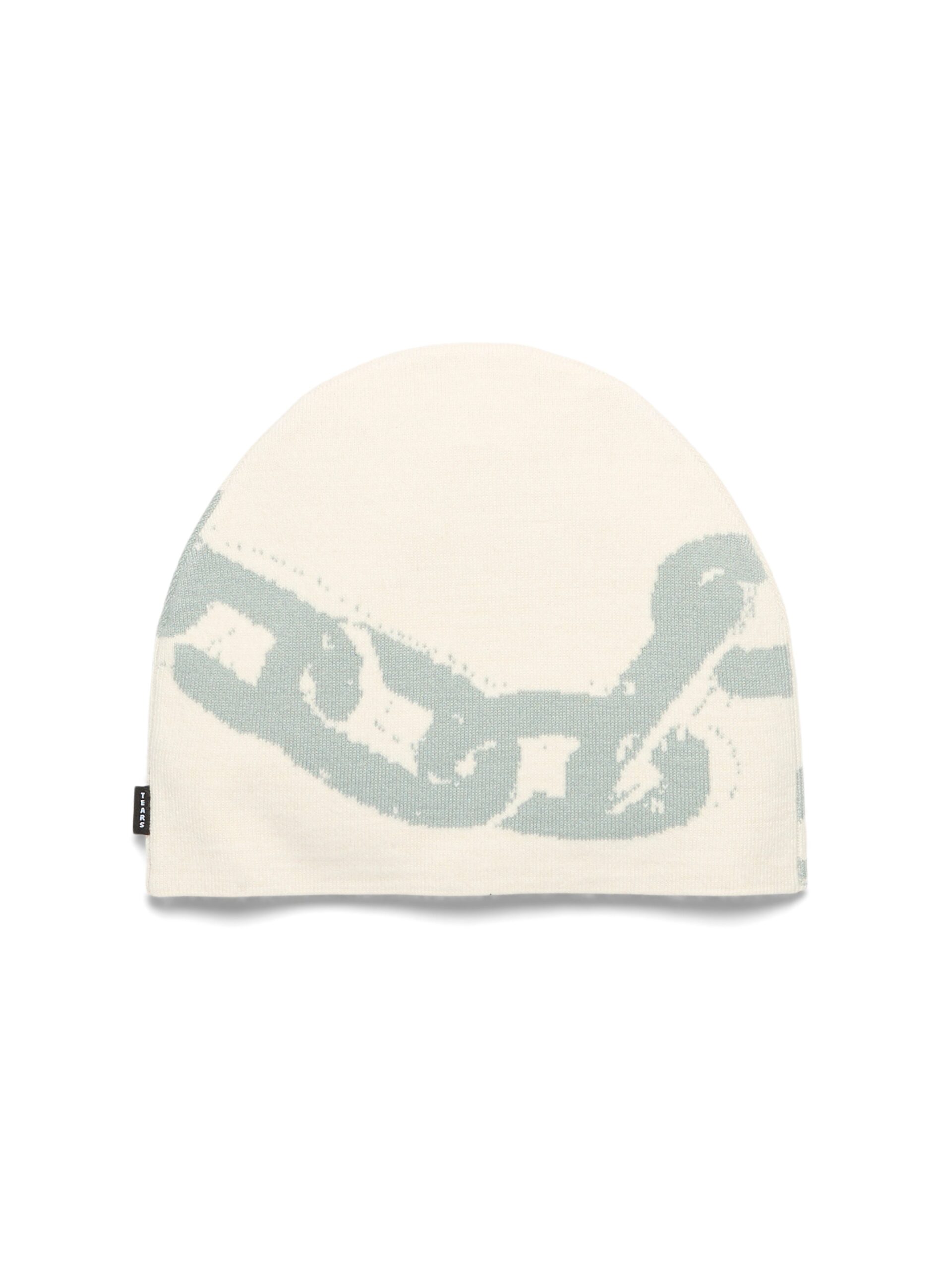 Produced in an acrylic and wool mix, our Libertas Skully features an all-over, contrast-color print of broken shackles, invoking sculptor Frédéric-Auguste Bartholdi’s original design for Lady Liberty holding shackles in her left hand to commemorate the end of slavery; a monument intentionally built to celebrate emancipation, relocated to her feet and obscured before completion following American funders’ rejection of Bartholdi’s vision.