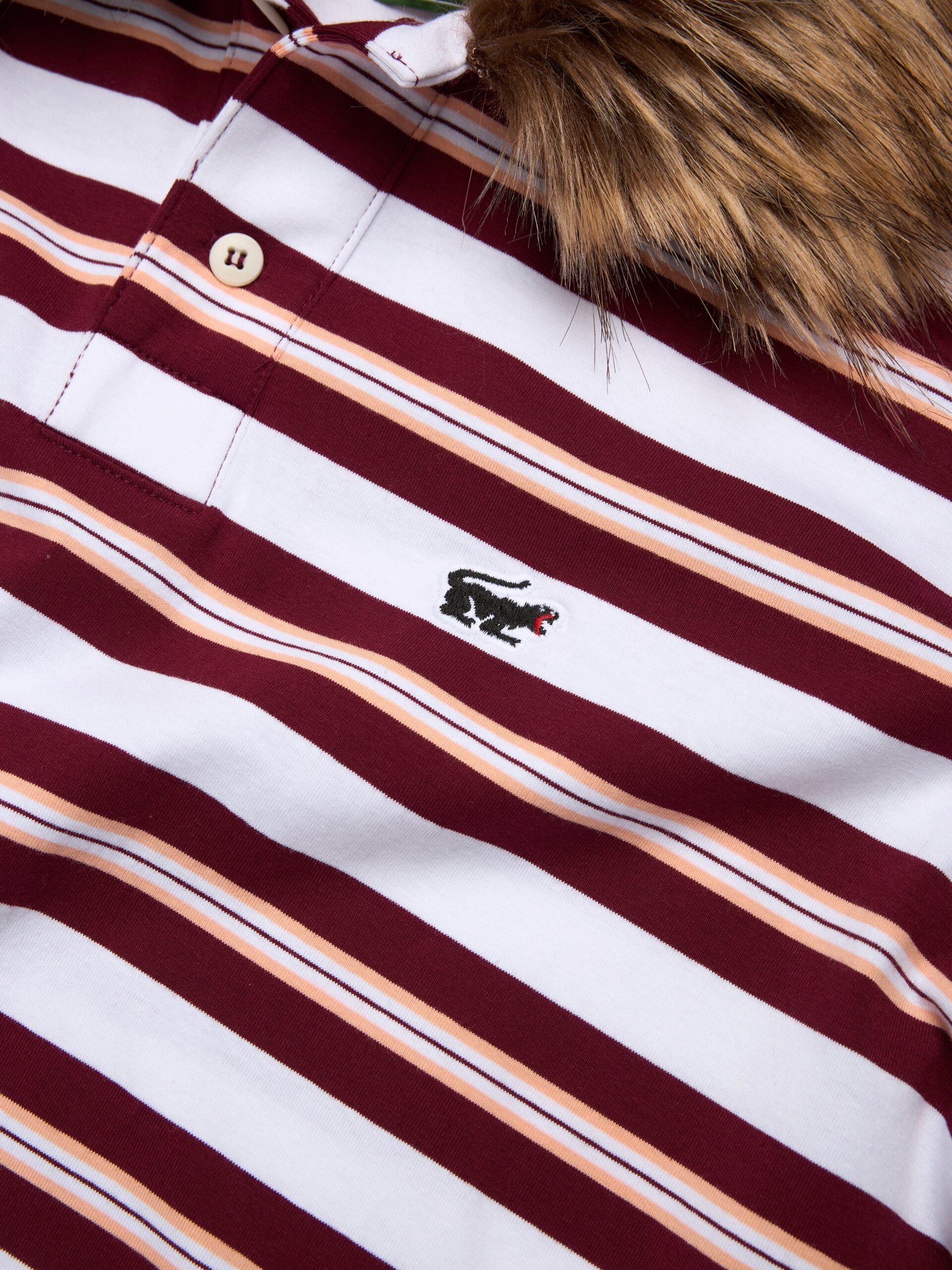 Produced in 100% cotton jersey and cut to a slim fit, with a faux fur flat collar and straight hem, our Panther Fur Collar Polo features contrast stripes across the full length of the body and sleeves. Finished with an embroidered panther logo on the chest.