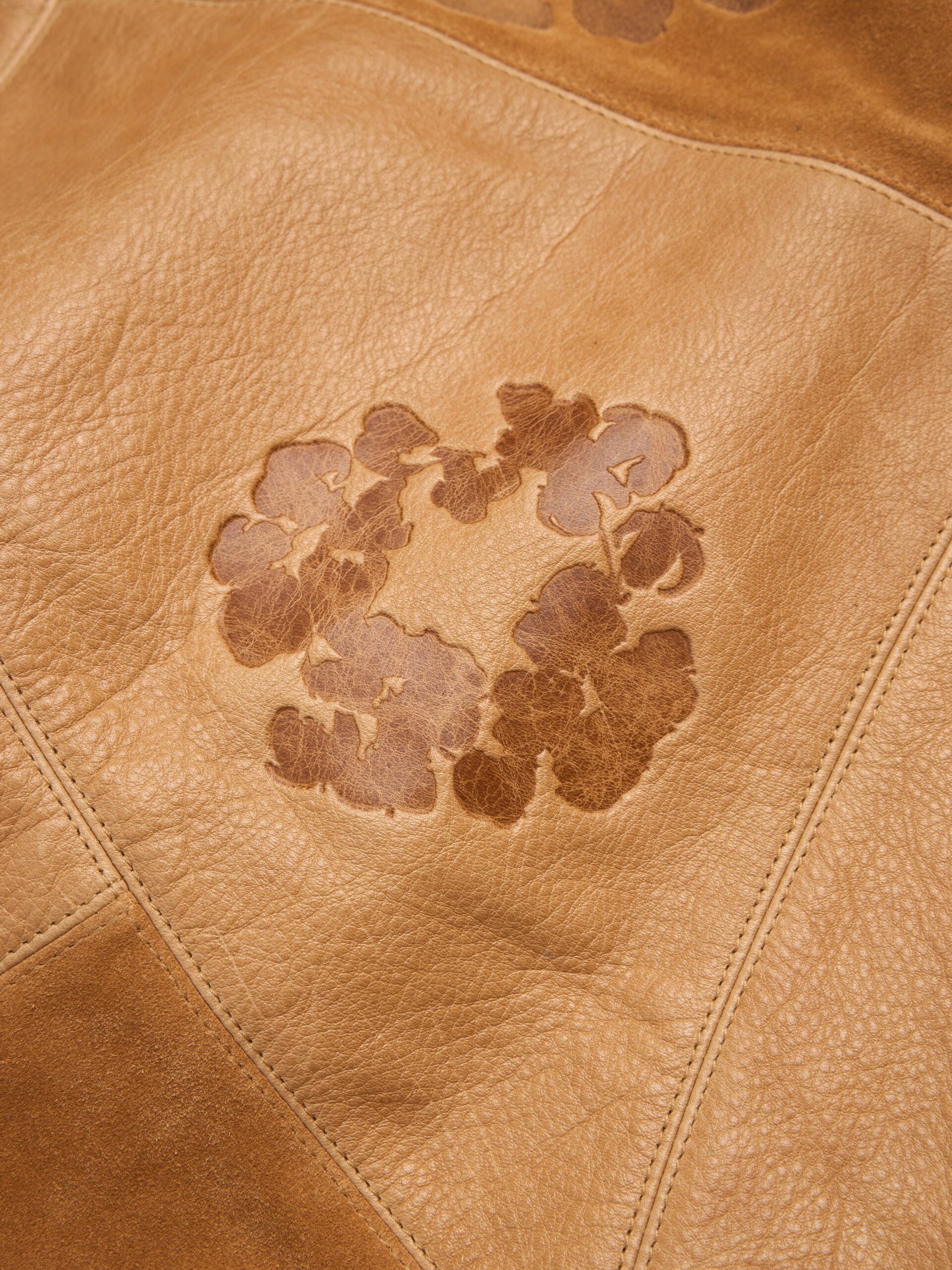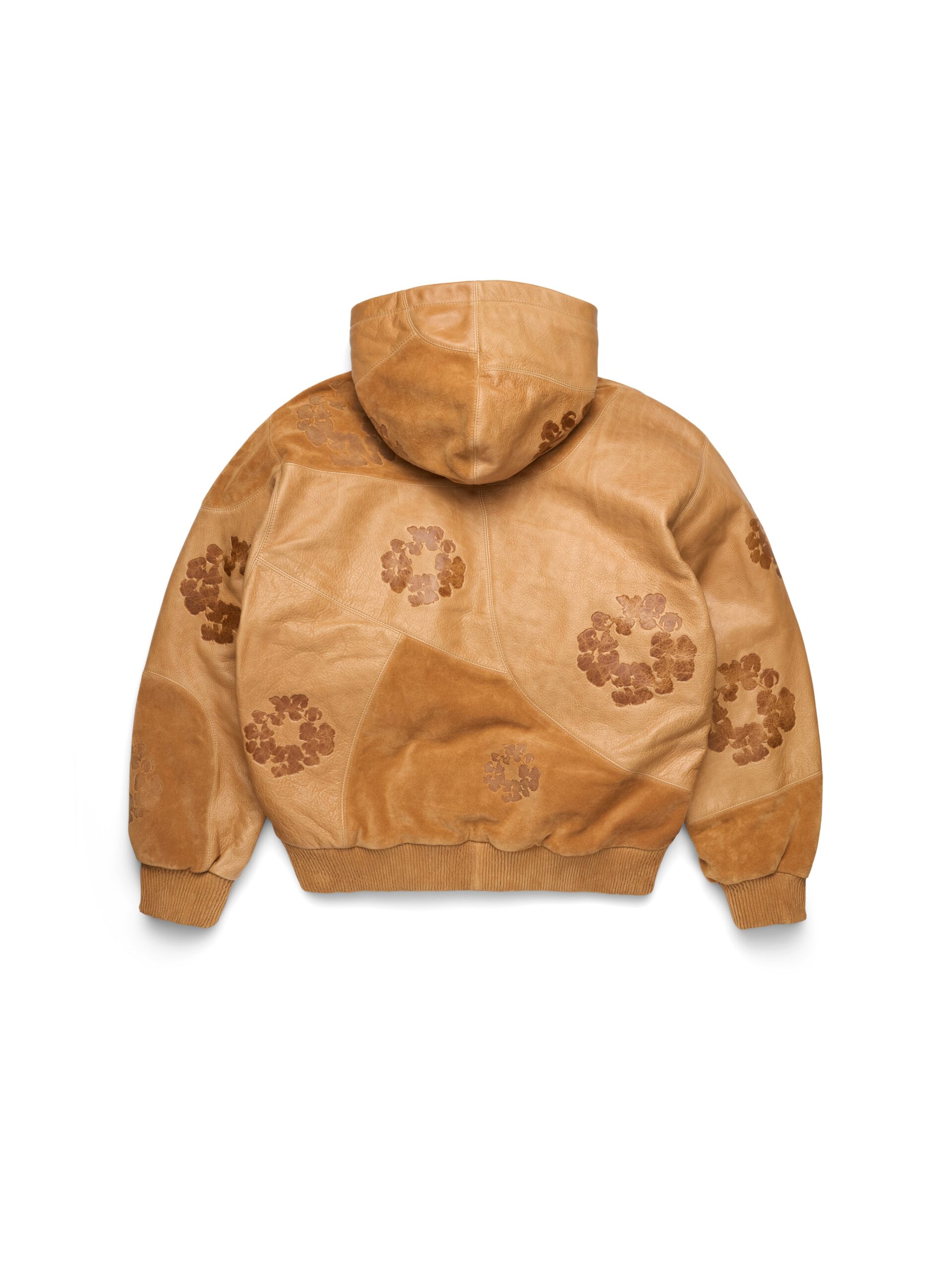 Produced in 100% leather and cut to mirror our Core Hoodies, the Patchwork Leather/Suede Cotton Wreath Hoodie features a patchwork leather and suede construction debossed with Cotton Wreaths throughout. Finished with a custom antique nickel Denim Tears zipper.