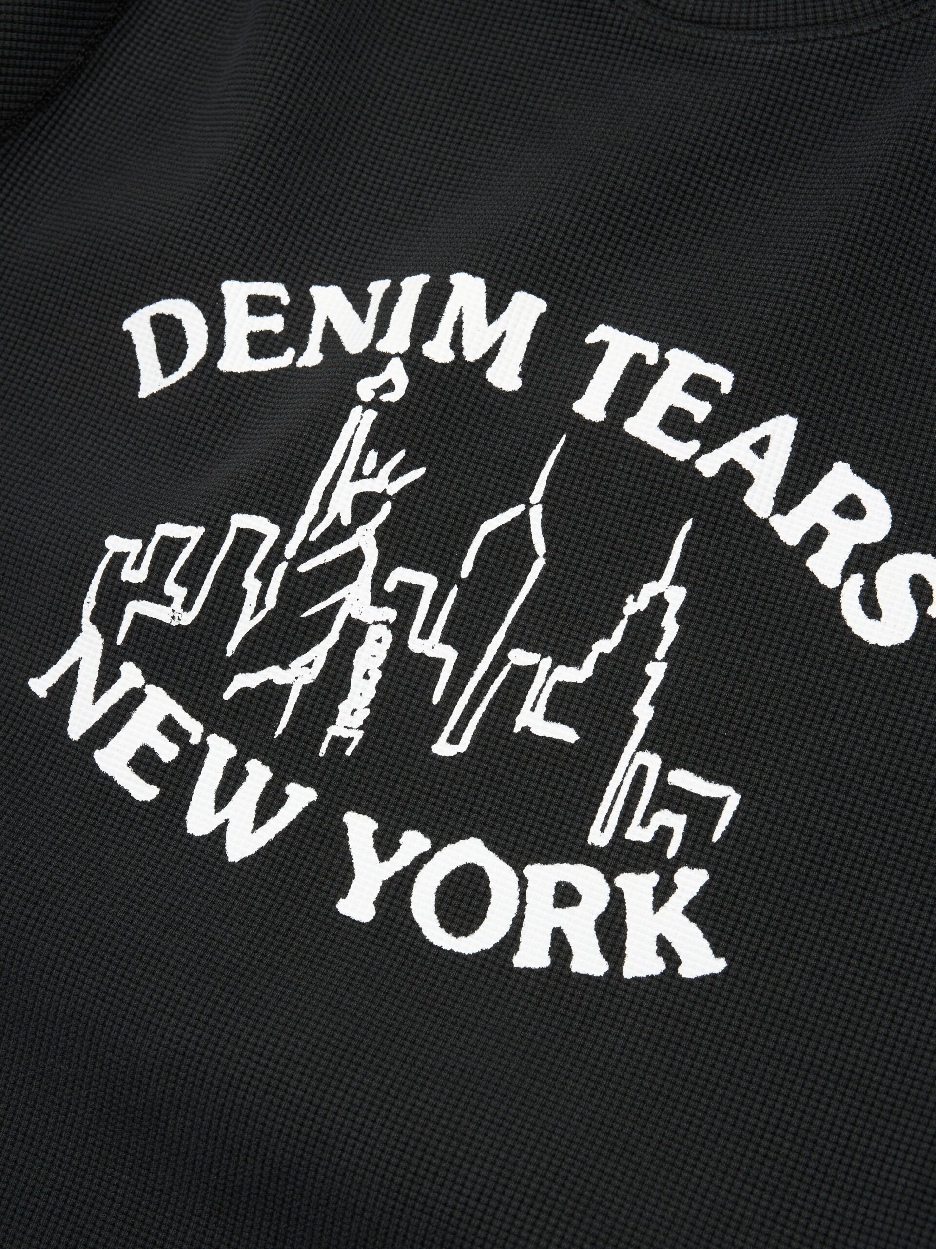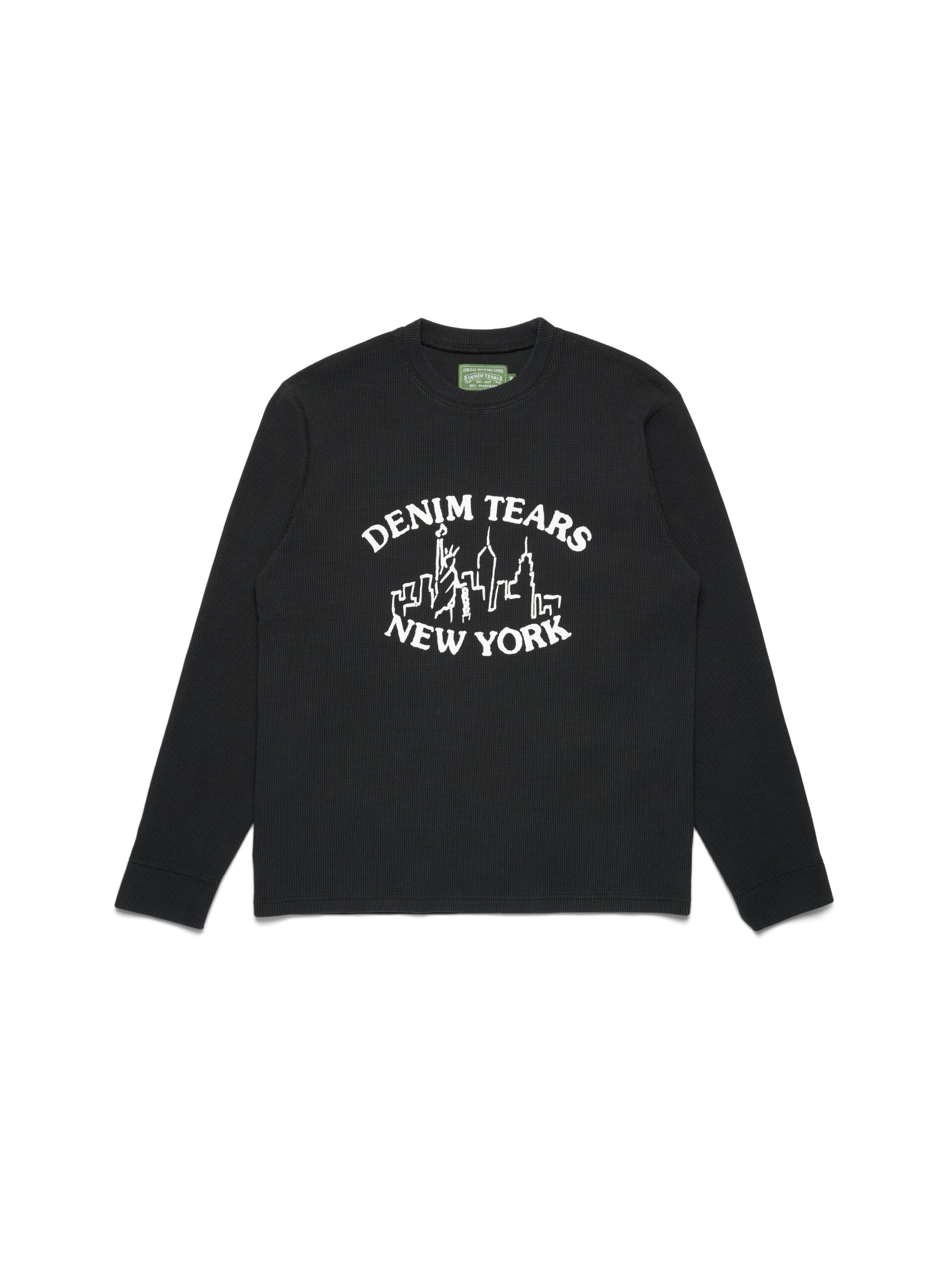 Our Skyline Thermal, produced in 100% heavyweight cotton waffle and cut to a regular fit, features a screen-printed ‘Libertas’ New York City skyline and spellout across the chest.